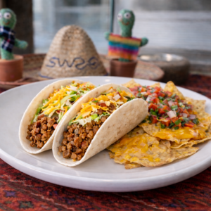 + 1 Taco Soft. Accompagné de nachos au cheddar fondu.
